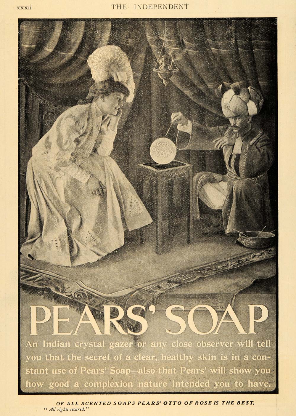 This is an excellent original 1907 black and white print ad for the Pears’ Soap from A & F Pears Ltd. Company.