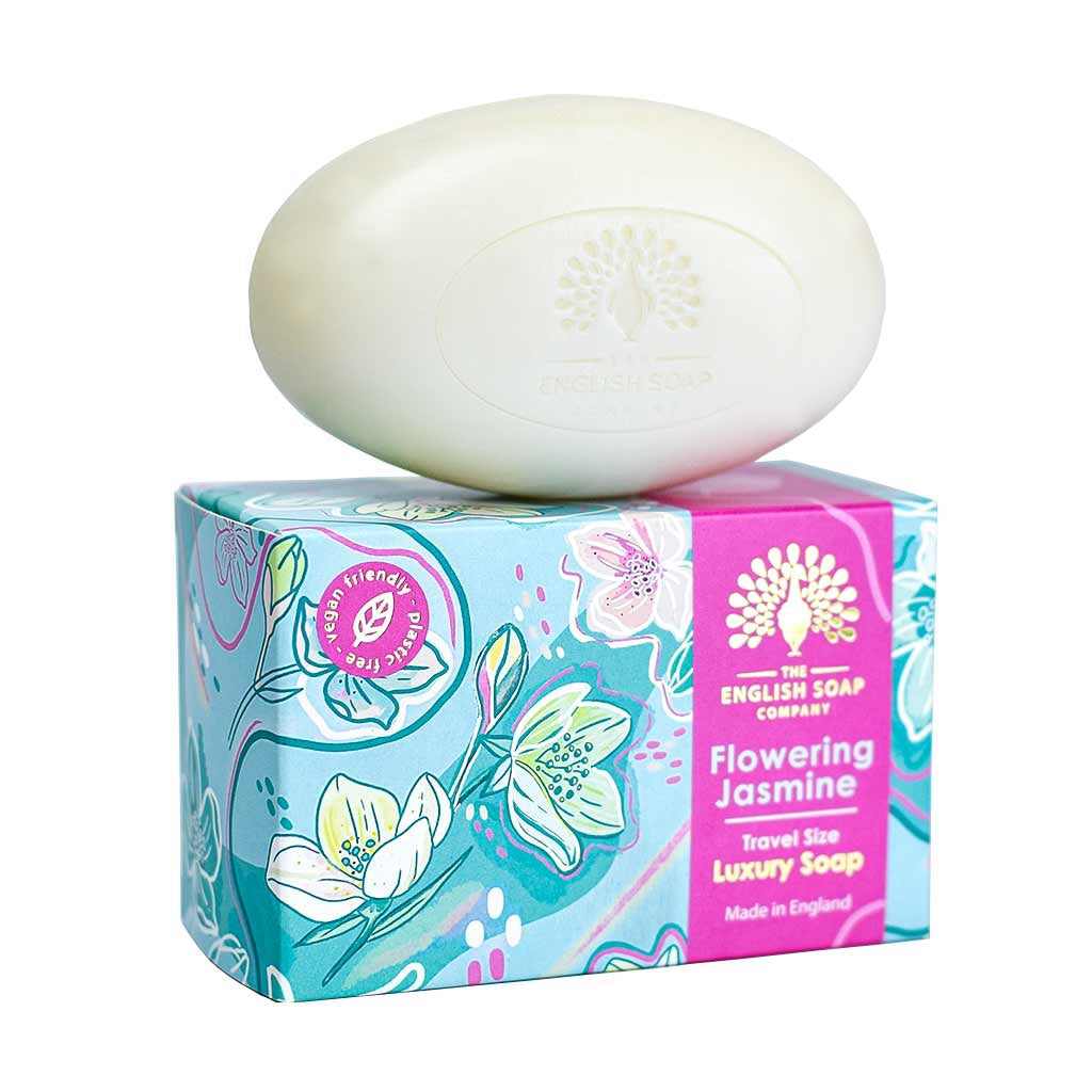 Elevate your bathing rituals with the Flowering Jasmine Mini Travel Soap Bar from The English Soap Company. Immerse yourself in luxury as you embrace the soothing scents of nature and indulge in a moment of self-care.
