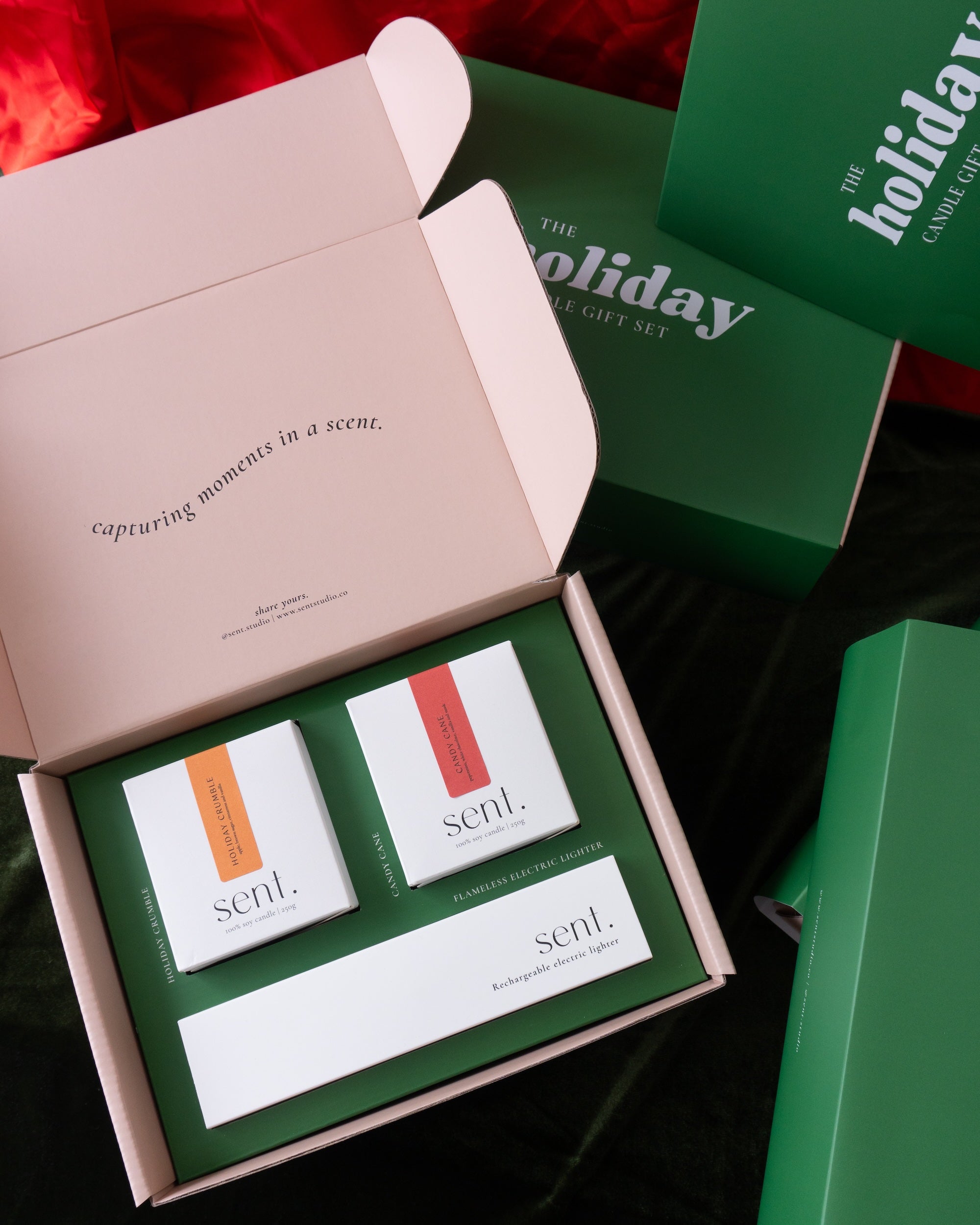 Includes: Candy Cane, Holiday Crumble and sent Flameless Lighter